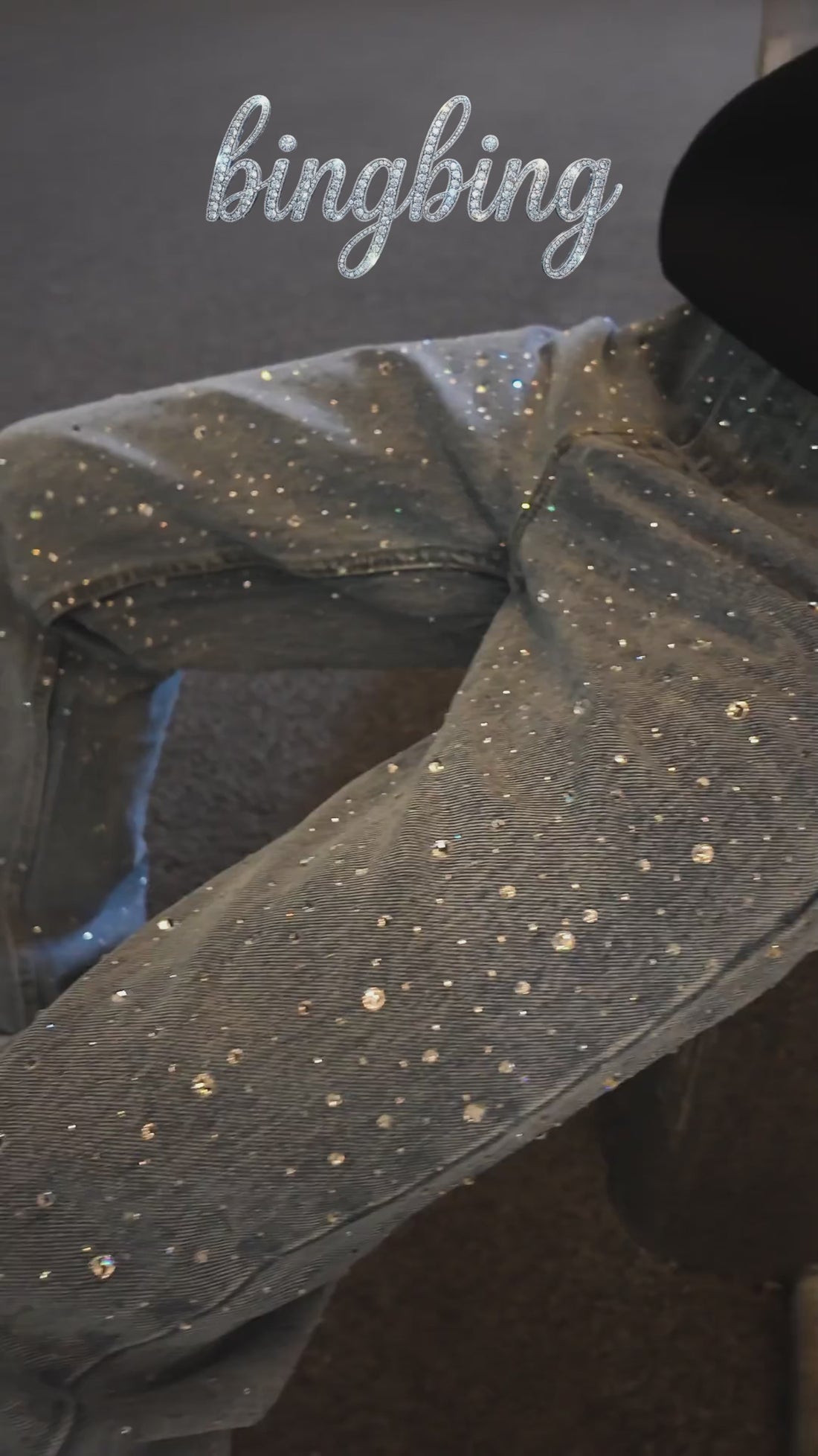 Elevate your street style sense with our premium curved rhinestone jeans.